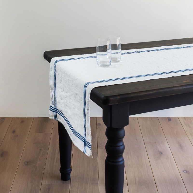 リネンの白と色濃い蒼のラインのコントラストが美しい