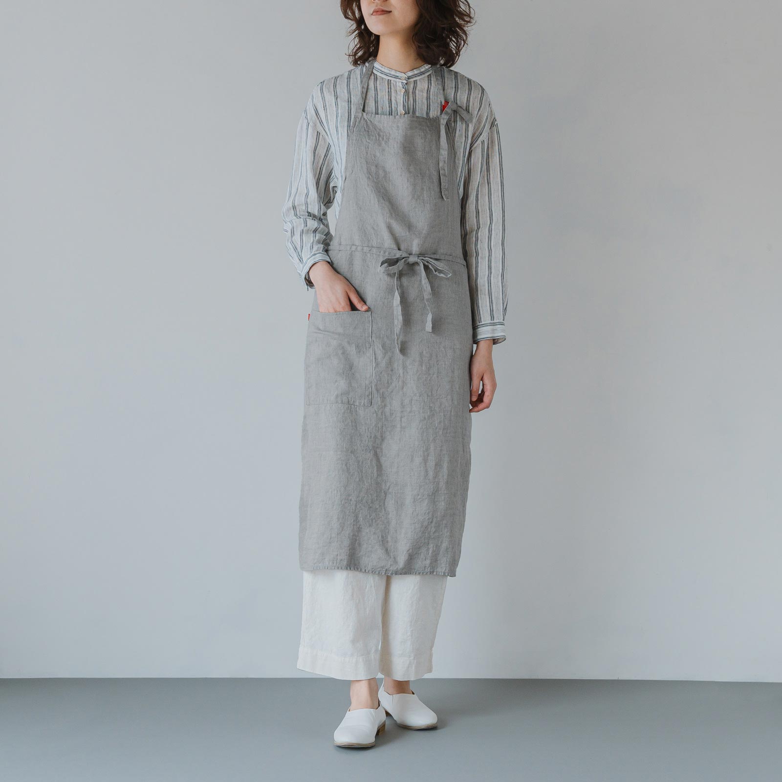 あらかじめ洗いにかけた柔らかなリネンは、使い始めから身体にしなやかにフィットします。丈夫な素材なので毎日気負わず使えるのがうれしい。洗うたびにくたっと柔らかい質感になり、その経年変化を楽しめます。