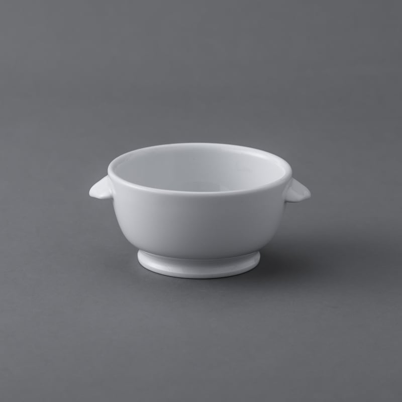 両側に小さな持ち手がついた、可愛いデザインのボウル。
