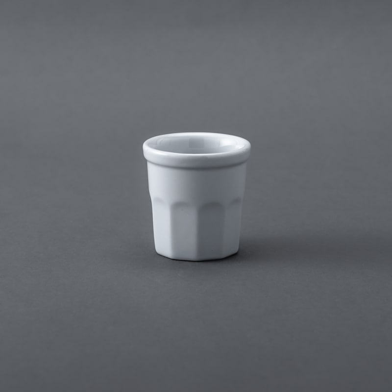 ジャム瓶の形をかたどった、かわいらしいデザインの白いジャムポット。
