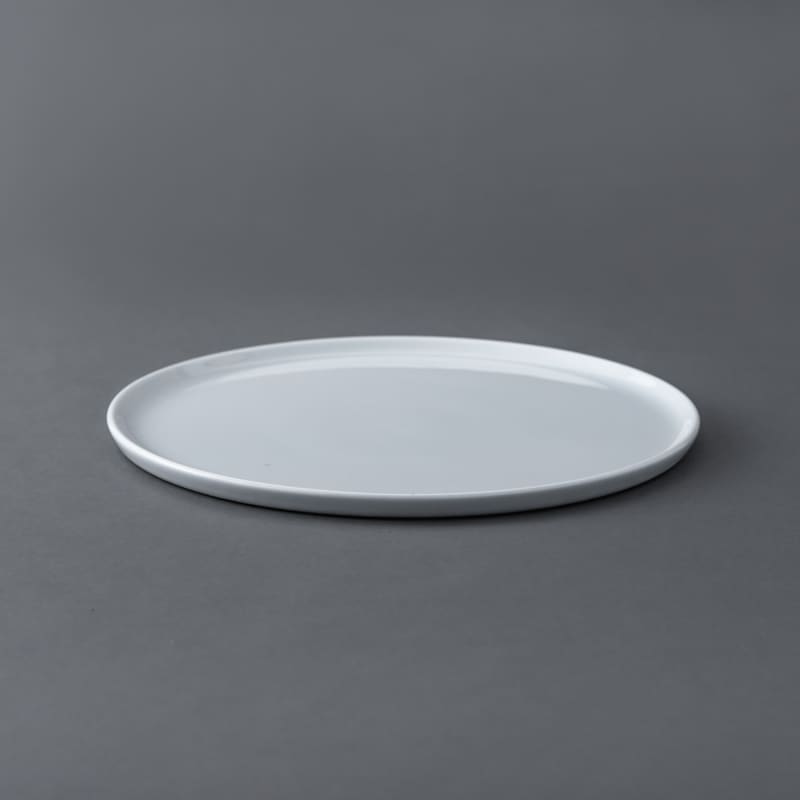 無駄のないシンプルなデザインの、フラットな白いプレート。