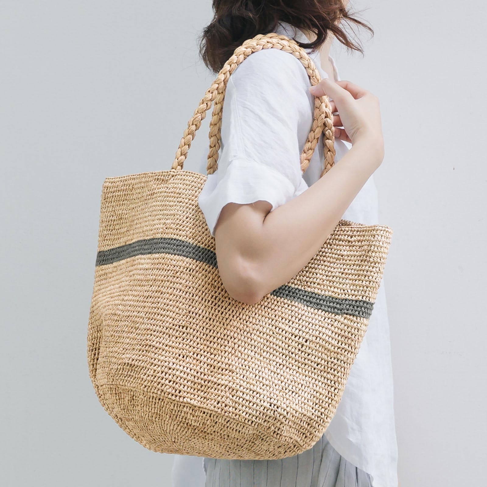 MH30ALICE STRIPE ラフィアバッグ Natural&Gray