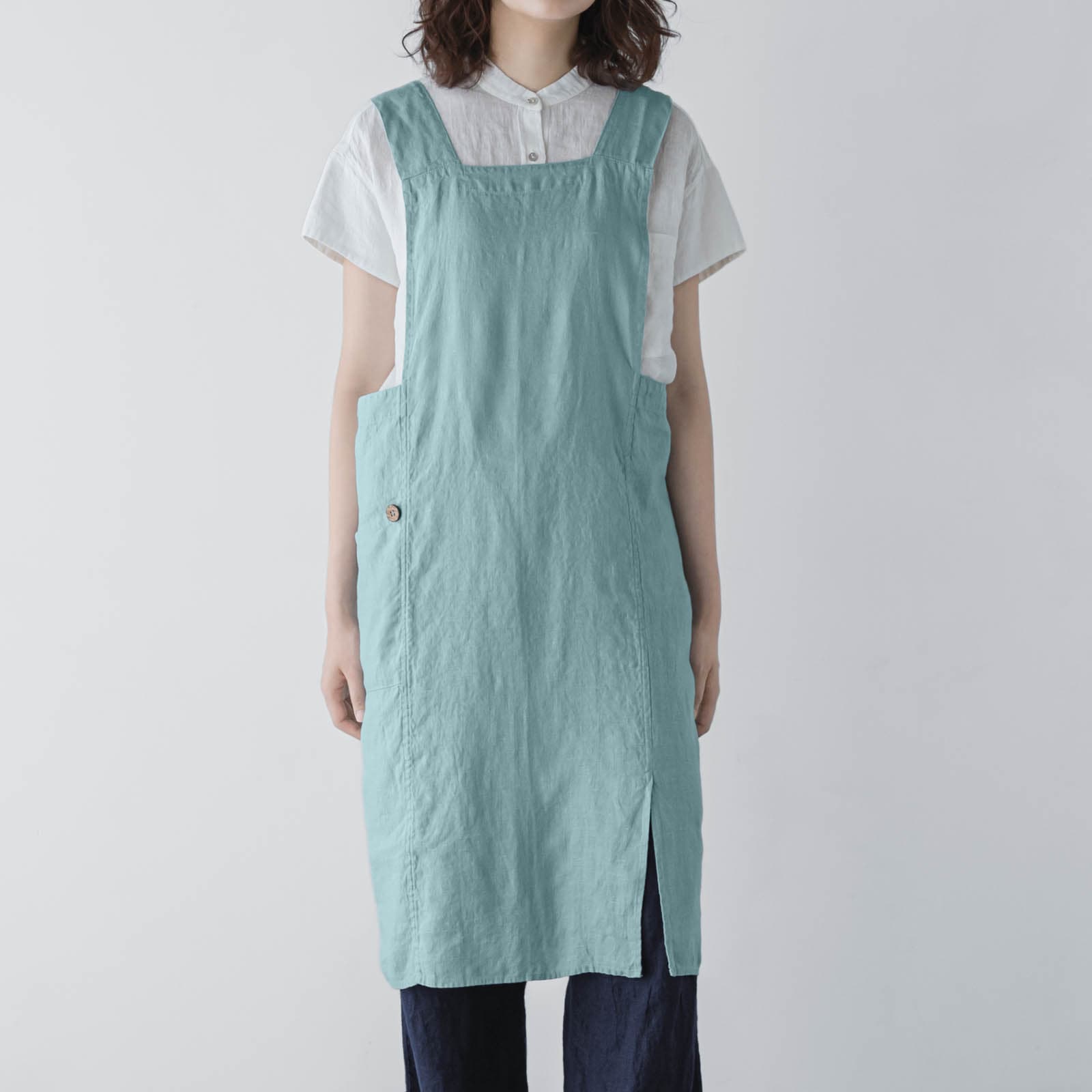 すっぽりとかぶるだけで着られるアニタ。首紐や腰紐がないので身体への負担が少なく、裾には深めのスリットが入った動きやすいデザイン。ゆったりとした着心地で、長時間の作業にもぴったりです。