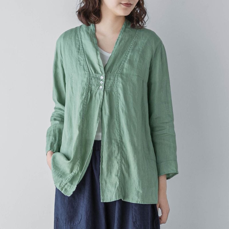 カーディガンのように使える軽やかなリネンブラウス