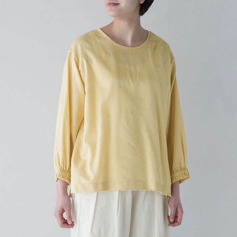 J08059ARTE POVERA _ コットンカルゼ洗いさらし クルーシャツ イエロー