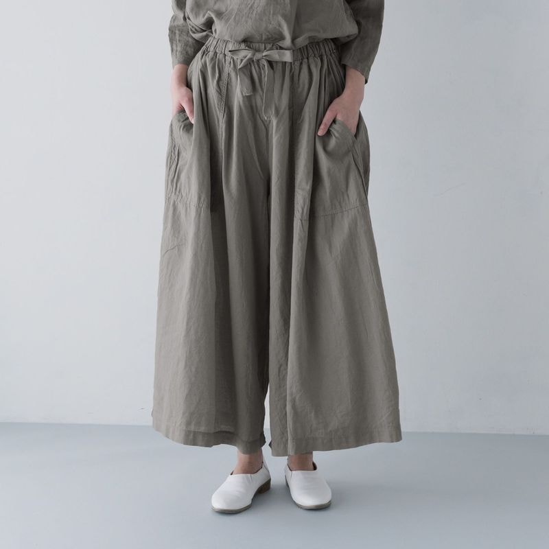 J08075ARTE POVERA _ リネン&コットン ギャザリングパンツ ネンドグレー